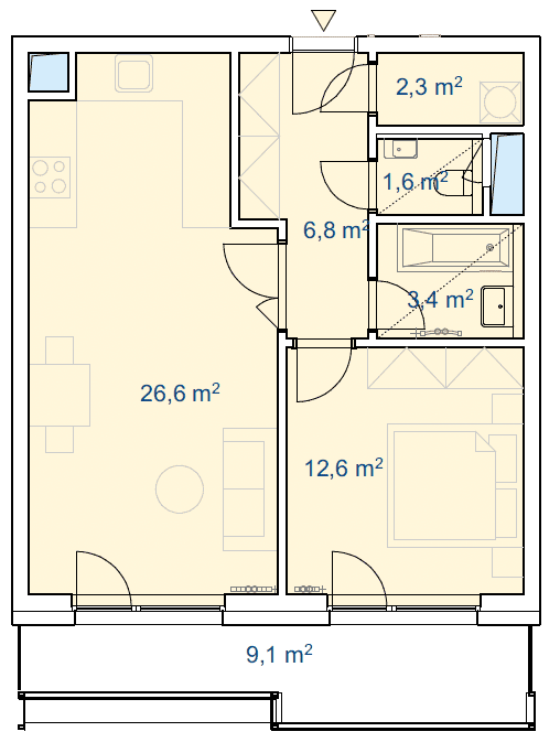 Celková užitná plocha 62,6 m2