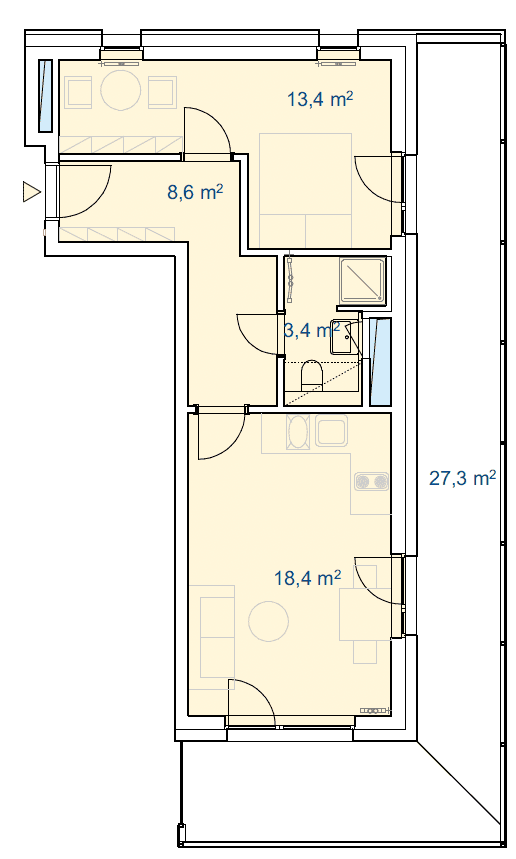Balkón 27,1 m2