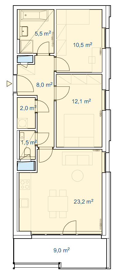 Celková užitná plocha 72,6 m2
