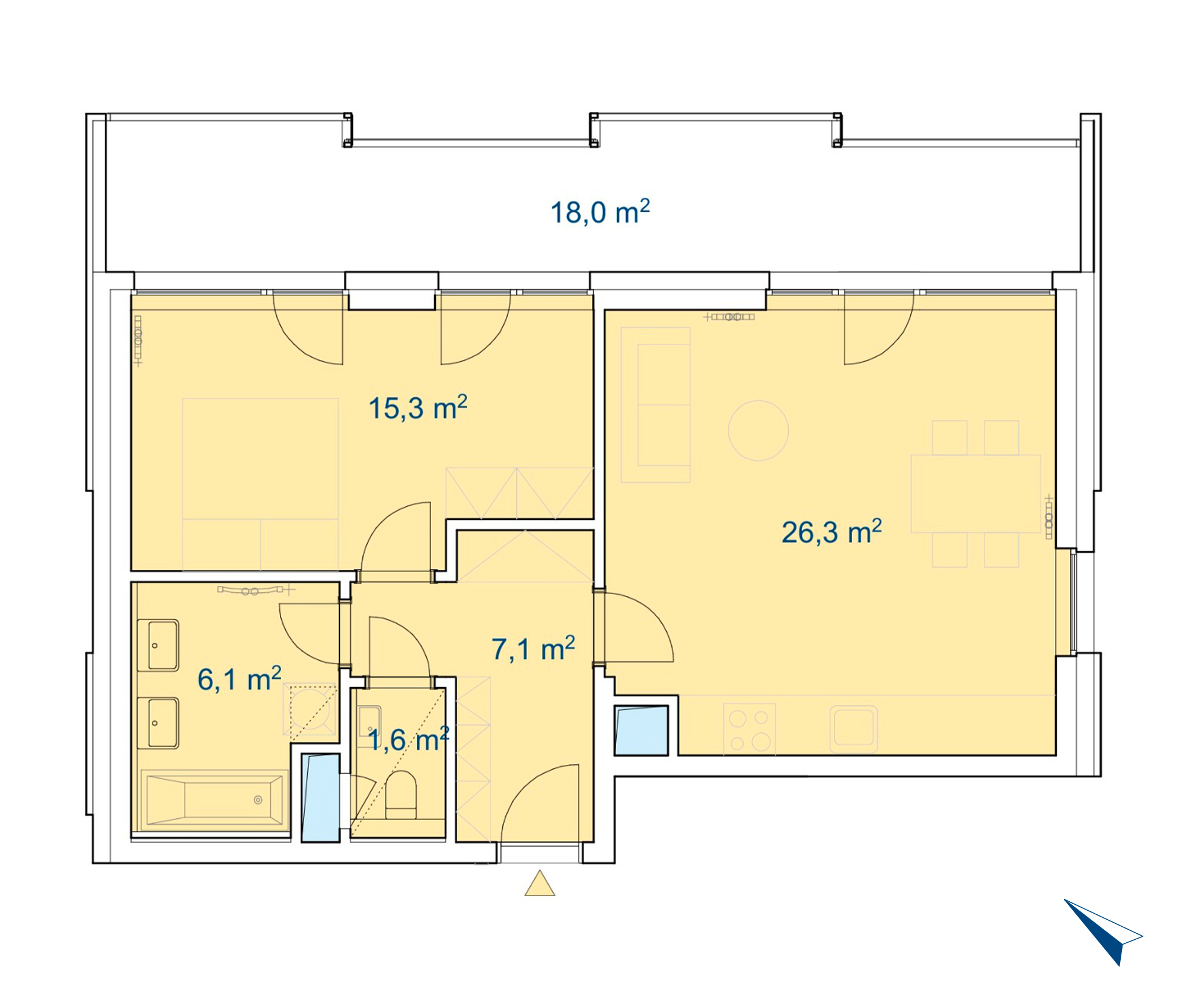 Celková užitná plocha 74,4 m2