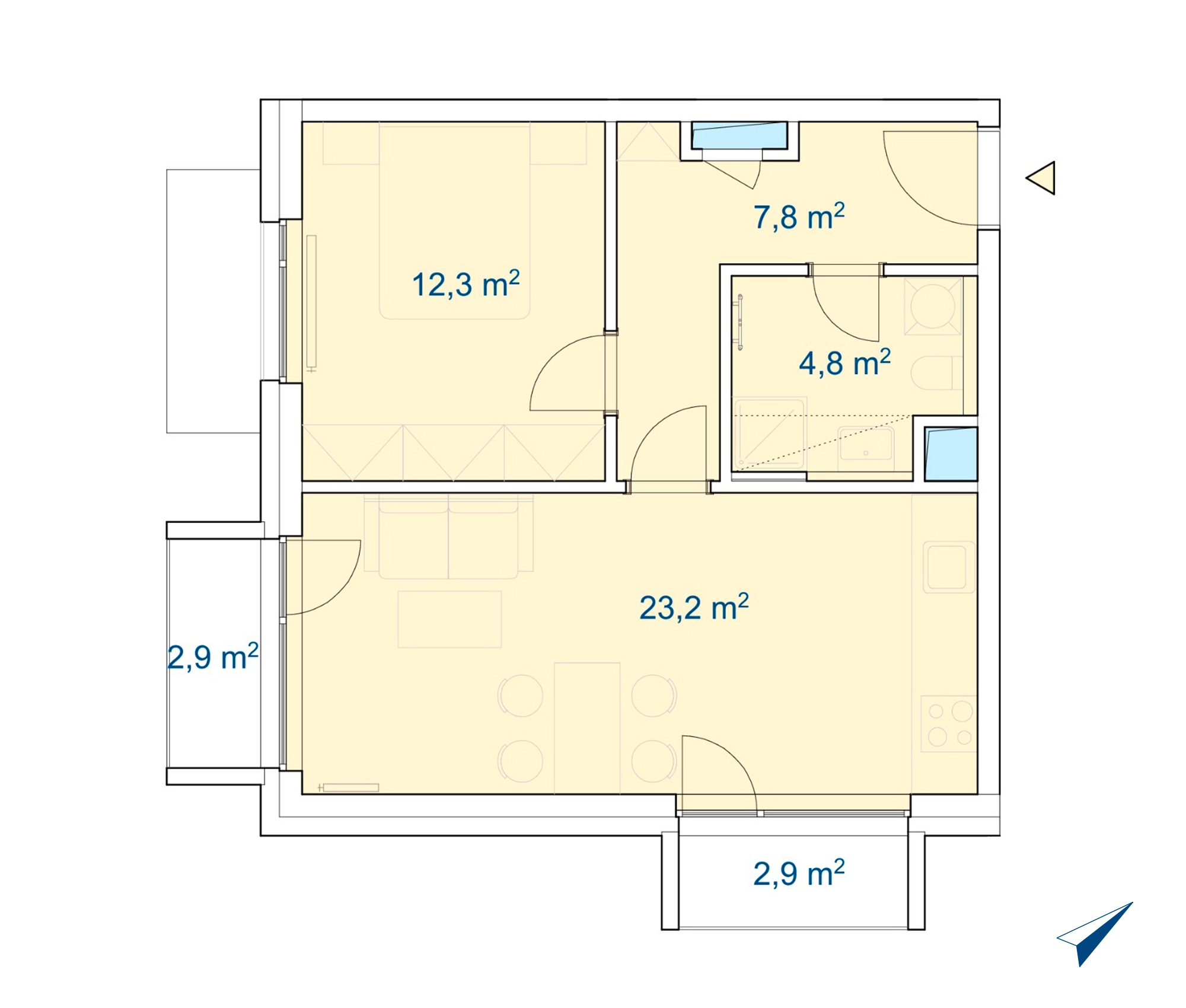 Celková užitná plocha 53,9 m2