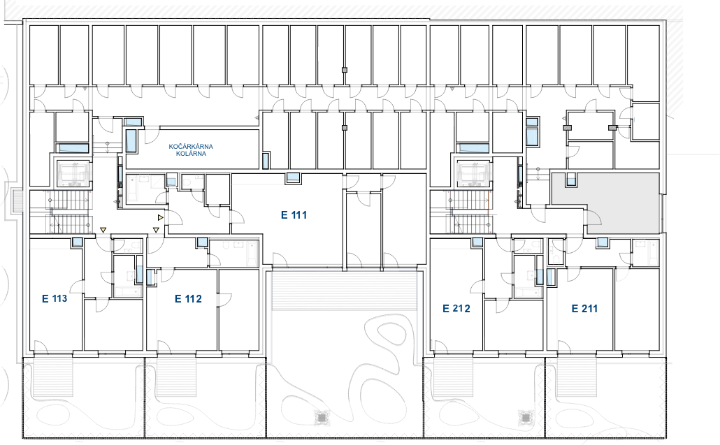 | E111 | E.1.1 | Přízemí | 3+kk | Byt | 88 m2 | Terasa (23 m2), Zahrada (84,5 m2) | 190,6 m2 | 11 275 347 Kč | OV | Volný |