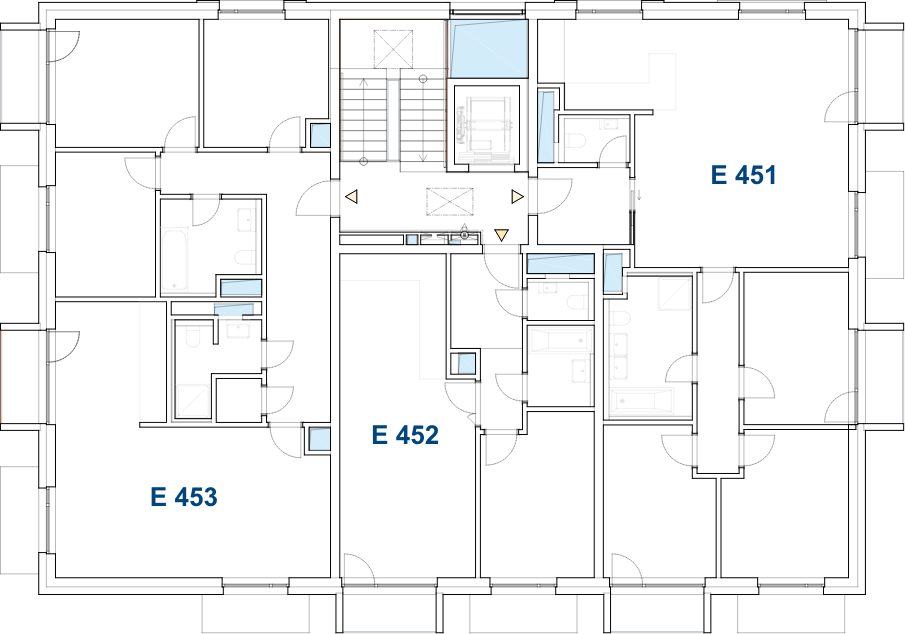| E451 | E.3 | 4. patro | 4+kk | Byt | 103 m2 | Balkón (8,7 m2) | 105,2 m2 | 12 490 000 Kč | OV | Volný |